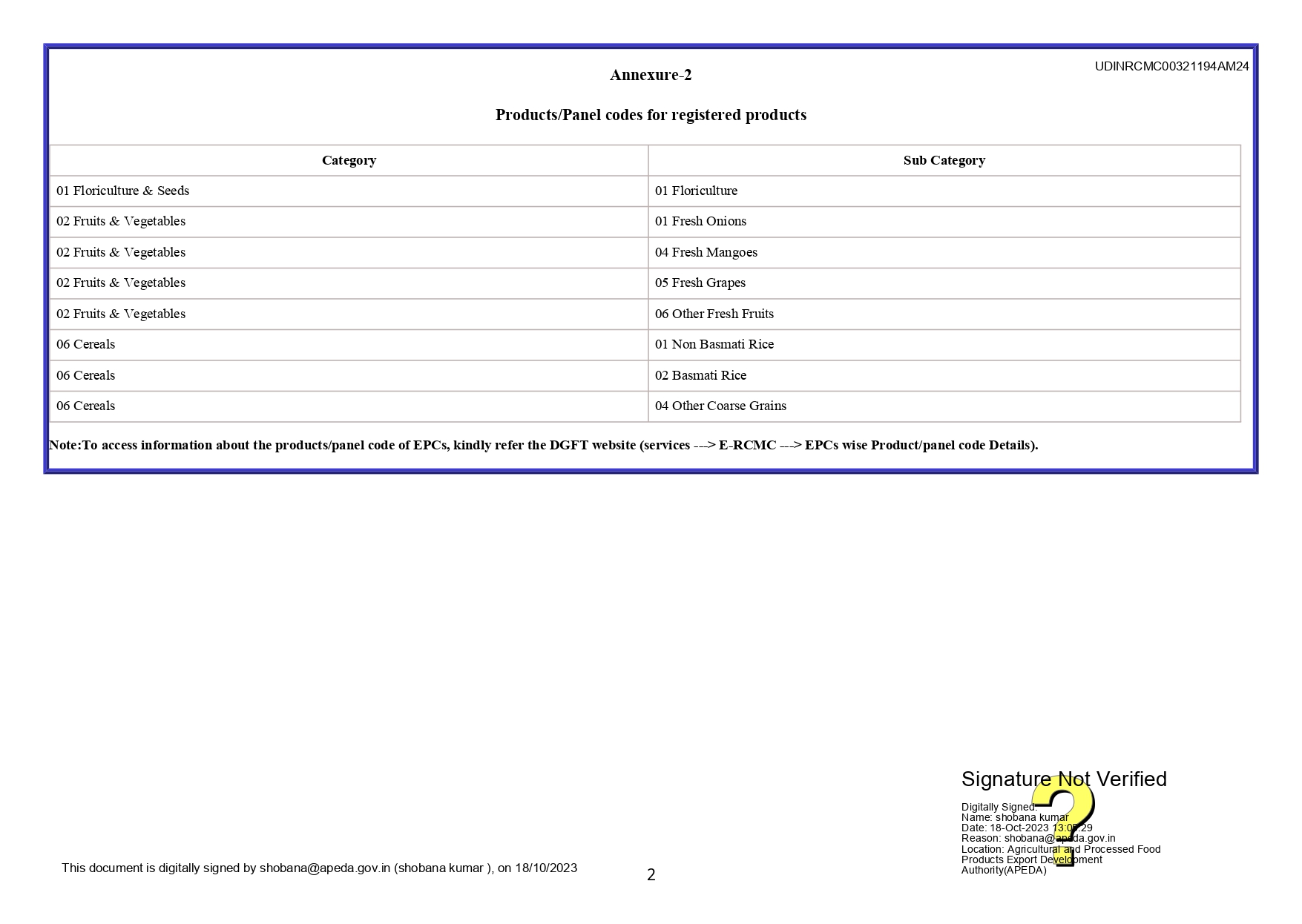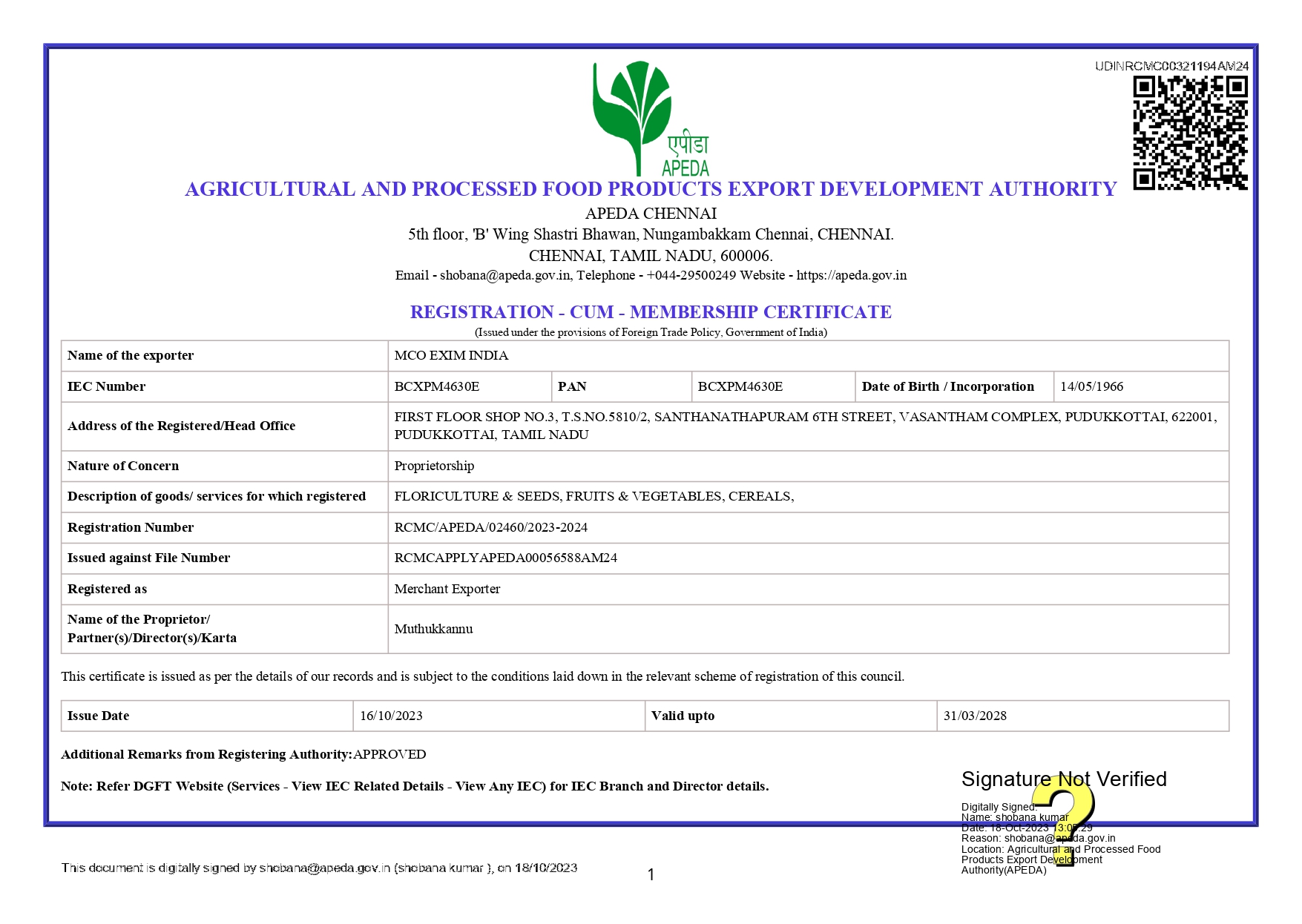 Importer and Exporter code certificate